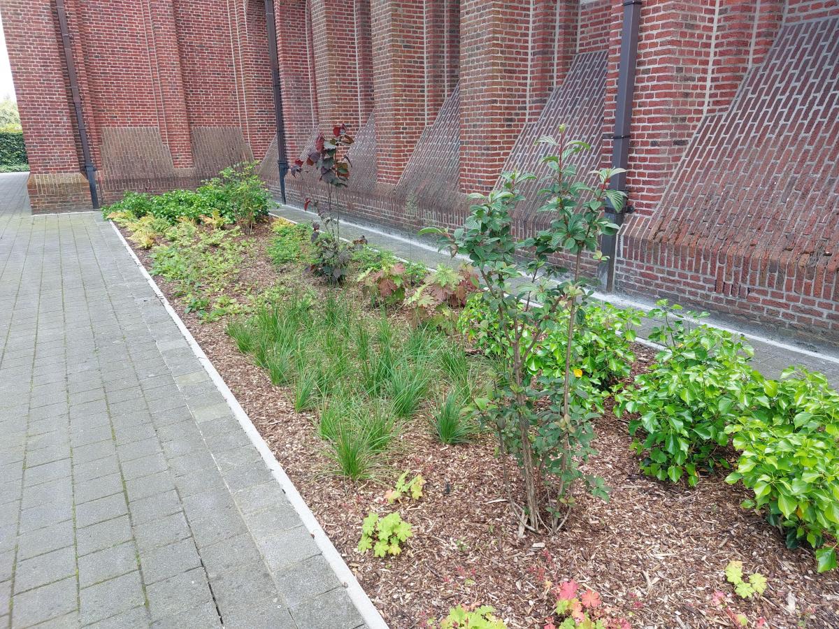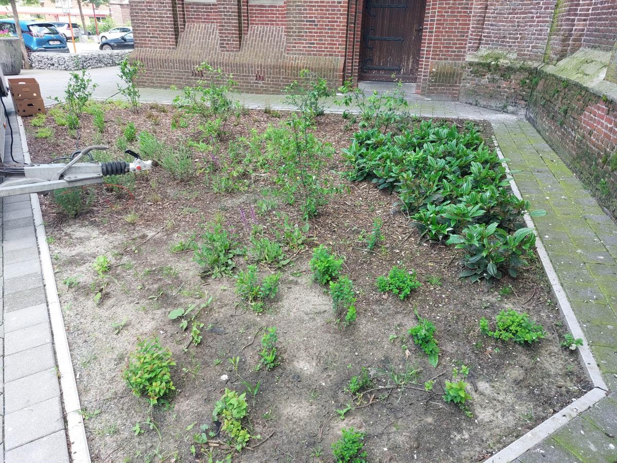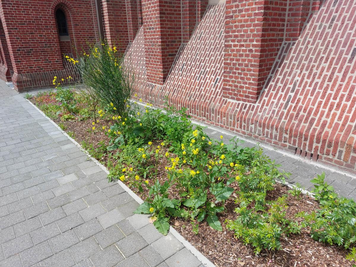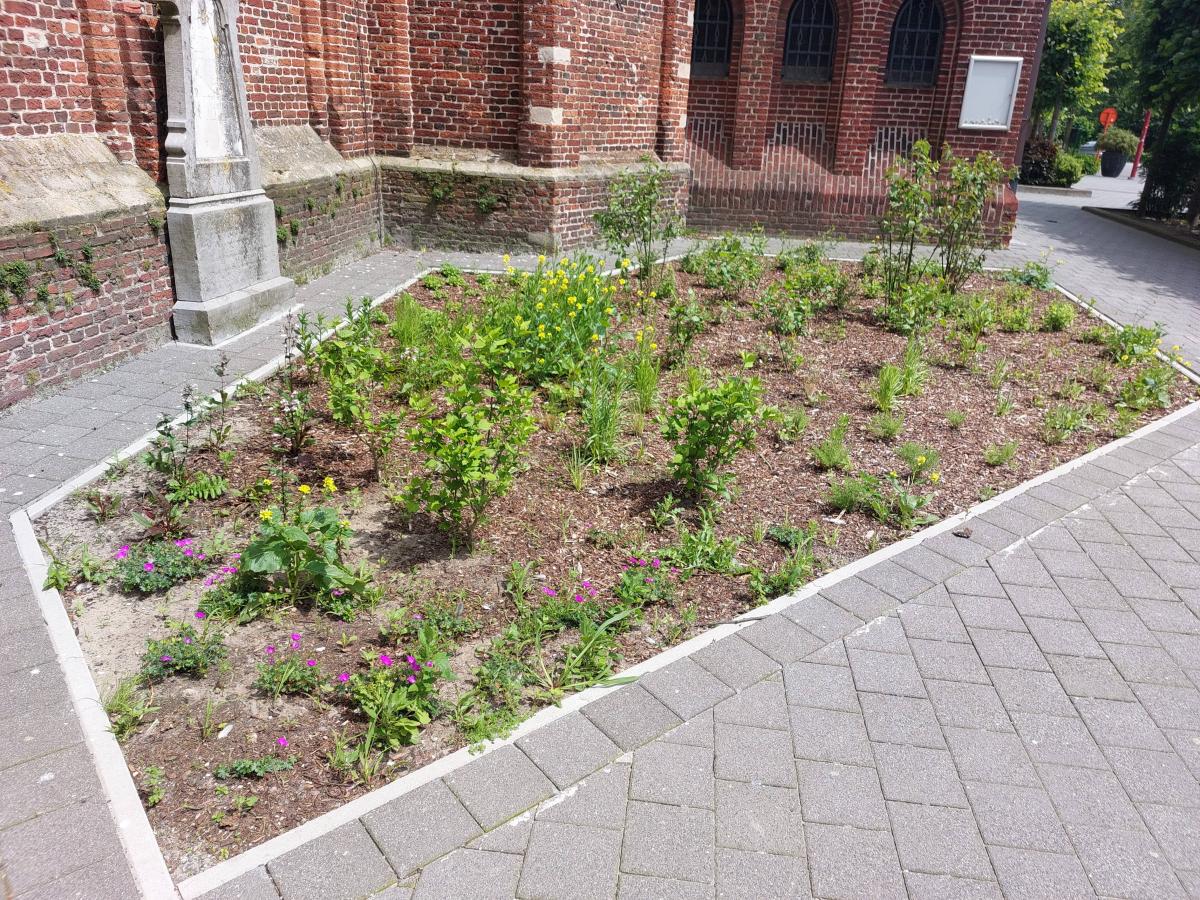 In februari 2024 werd er 162 m² aan tegels opgebroken en opnieuw aangeplant rondom de kerk in het centrum. Voor de beplanting werd er gekozen voor bijenvriendelijke kruid- en struikgewassen. Bijkomend werd de beplanting zodanig gekozen om een esthetisch geheel te creëren tussen de kerk, de rotonde en de toekomstige omgevingsaanleg van het gemeentehuis.