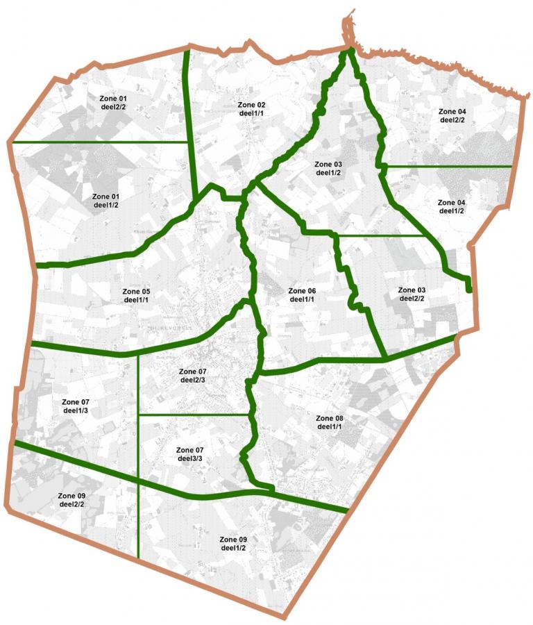 Ook Pidpa-Hidrorio ruimt baangrachten van de gemeente. De frequentie van het ruimen van de baangrachten is bij hen in principe één keer om de vier jaar, of indien de noodwendigheid dit vereist. Onderaan kan je de kaarten terugvinden met de aanduiding van de baangrachten die door de gemeente moeten worden geruimd (lichtblauwe stippellijn) en deze die door Pidpa-Hidrorio worden proper gemaakt (doorlopende lichtblauwe lijn). In deze overzichtskaart kan je zien in welke zone je je bevindt.