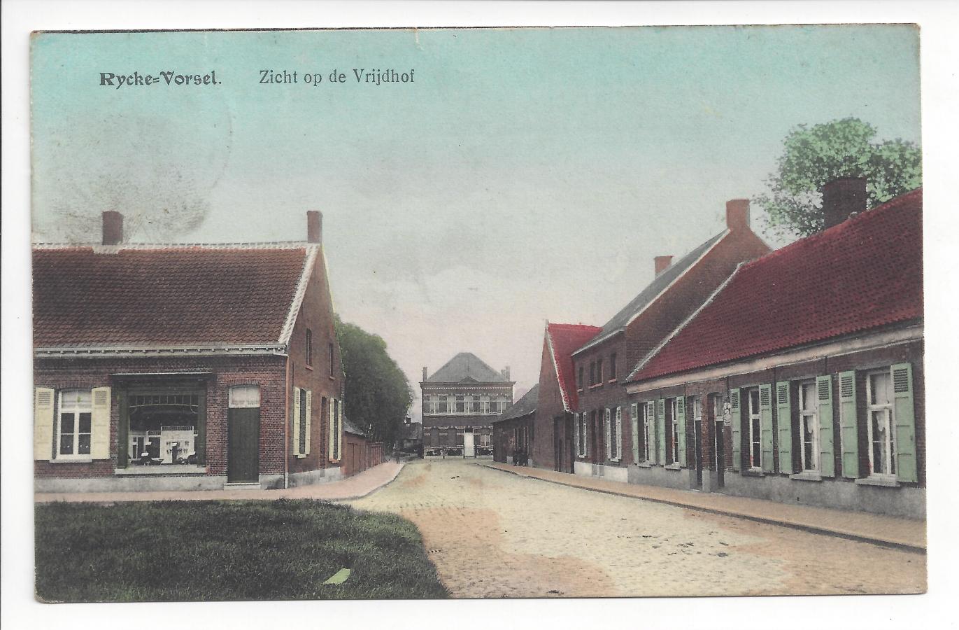 Het Vrijthof was de groep van tuinen, links van het statige doktershuis op de achtergrond. Naast het doktershuis begon de Eekhofstraat. Die straat buigt zich rond het vroegere Vrijthof. Links vooraan woonde kleermaker Hendriks, alias Scheir.