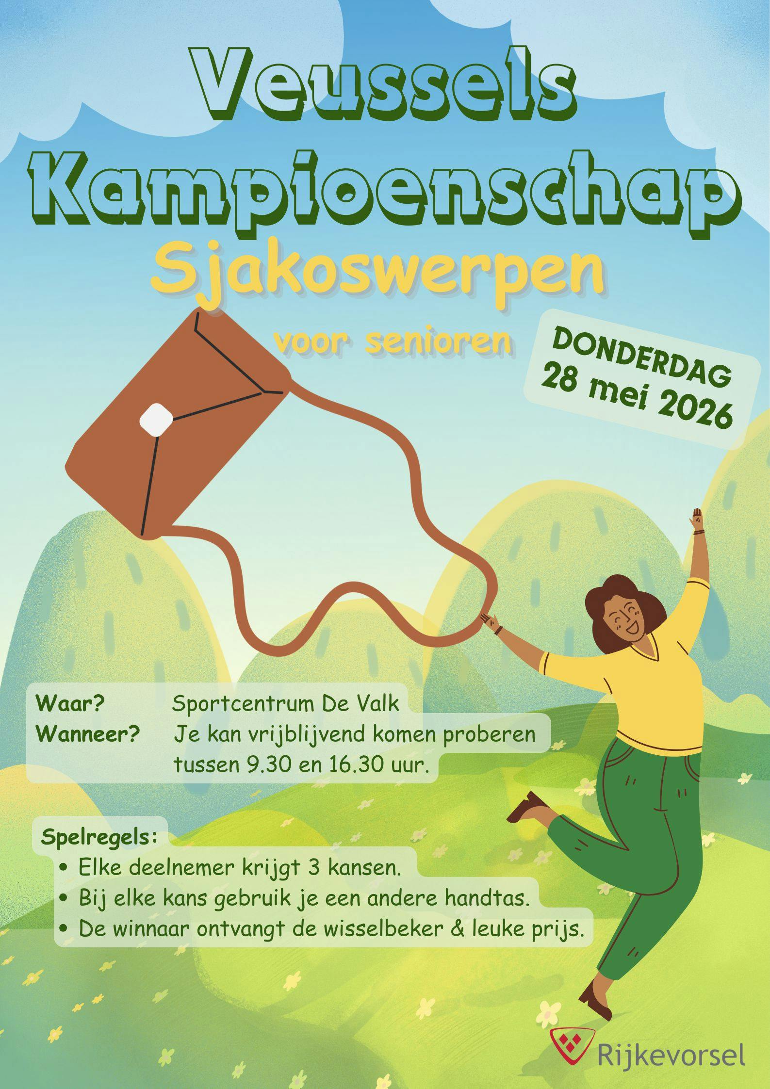 Tijdens de 2310-Sporteldag vindt ook de tweede editie van het Veussels kampioenschap sjakoswerpen voor senioren plaats op de sportterreinen aan De Valk. Je hoeft hiervoor niet vooraf in te schrijven.